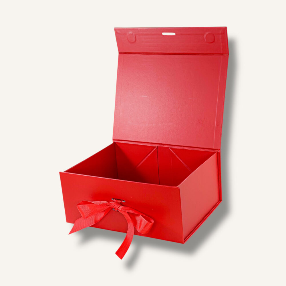 Raudona sulankstoma dovanų dėžutė S su kaspinu