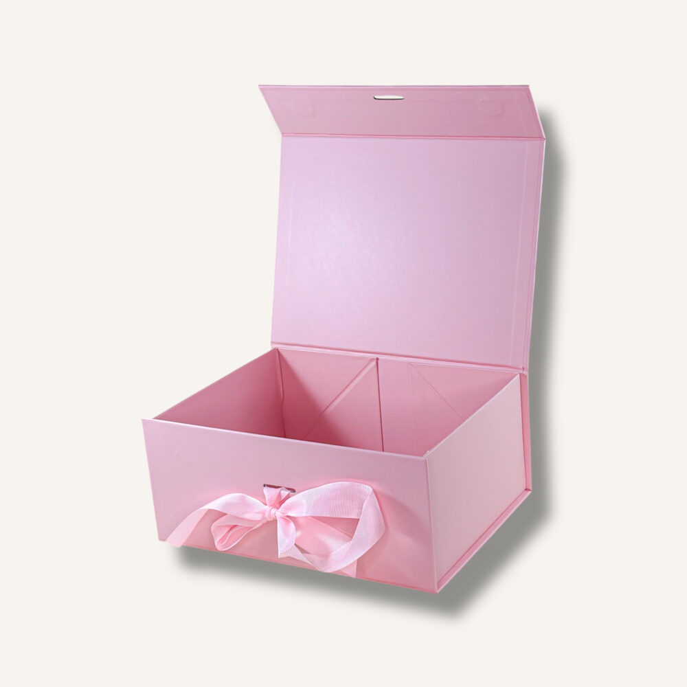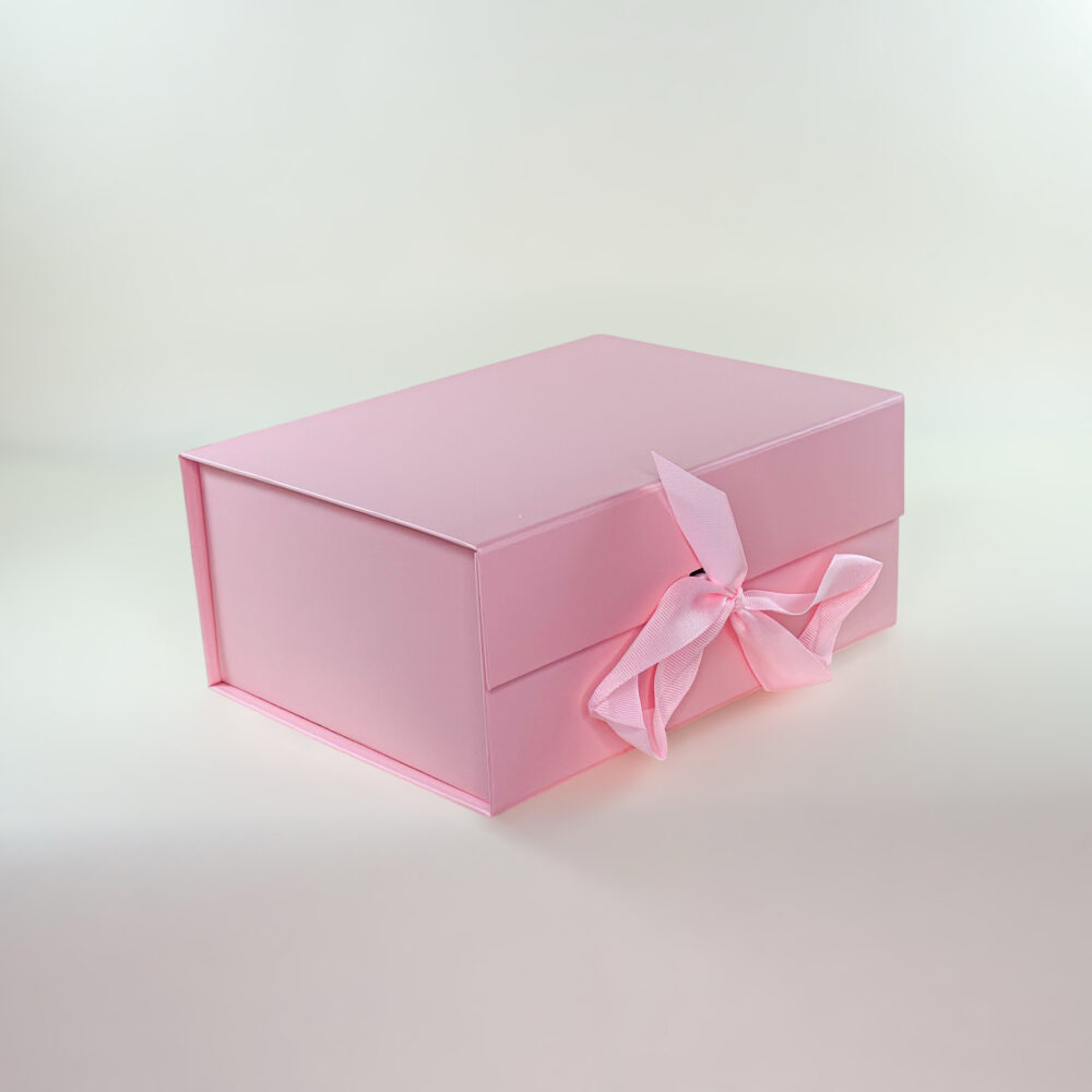 Rožinė sulankstoma dovanų dėžutė S su kaspinu