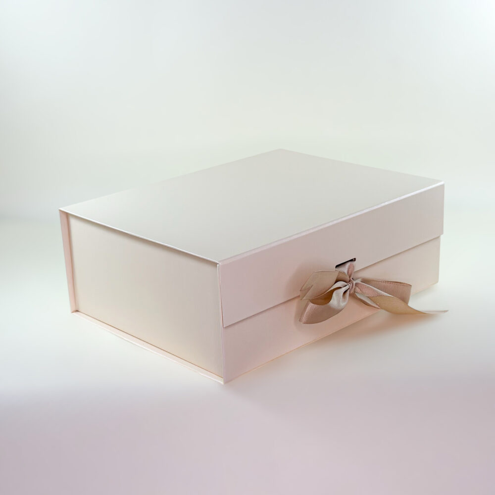 Smėlio spalvos sulankstoma dovanų dėžutė M su kaspinu