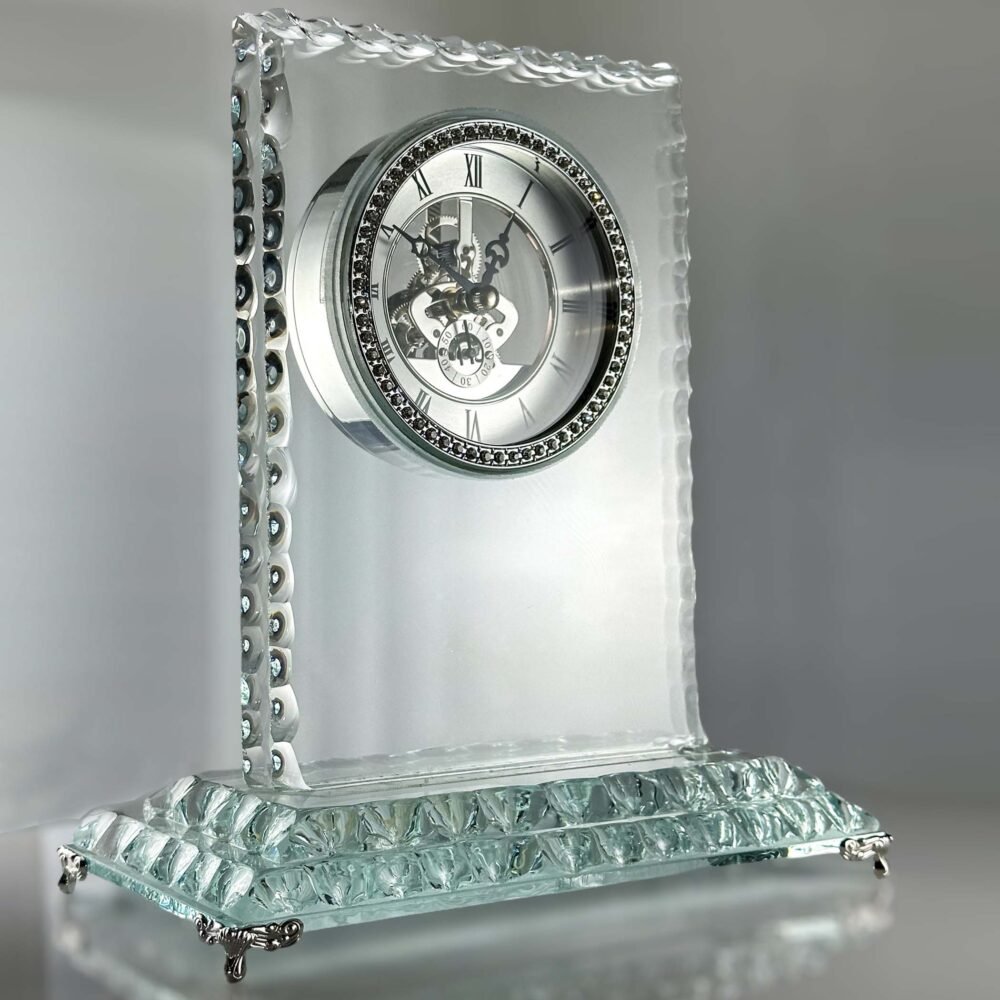 Sidabrinis „Kristalo Vizija“ modelis pasižymi minimalistine estetika ir švariu stiklo dizainu, kuris puikiai įsilieja į modernius interjerus. Mechanizmo detalės matomos per skaidrų paviršių, todėl laikrodis atrodo lengvas ir išskirtinis. Graviruotė suteikia galimybę įamžinti vardą, datą ar logotipą – idealiai tinka verslo dovanoms, įteikimams ar iškilmingoms progoms.