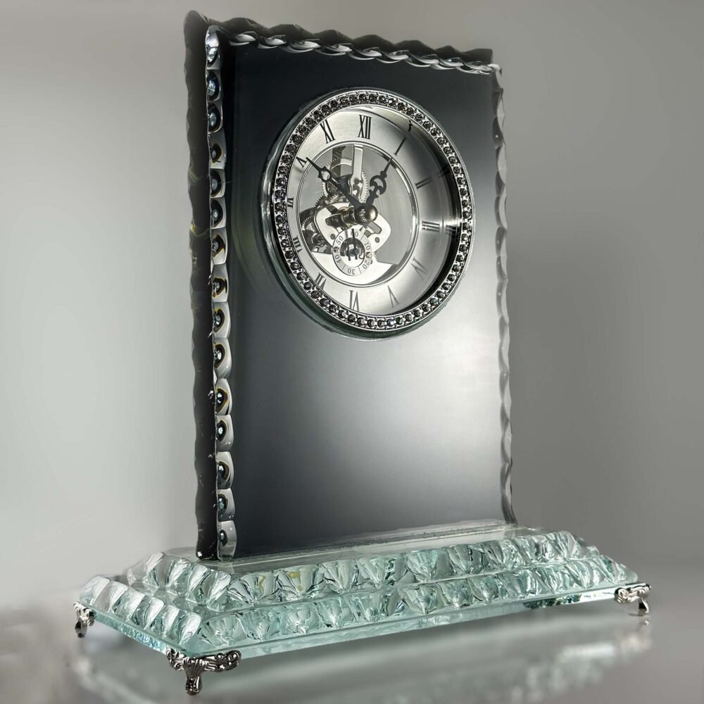 Sidabrinis „Elegancija“ modelis spindi modernia estetika – veidrodinis paviršius kuria gylio pojūtį, o sidabro tonas suteikia ramybės ir tvarkos įspūdį. Atviras mechanizmas išryškina meistriškumą, o graviravimo galimybė suteikia papildomos vertės. Idealiai tinka šiuolaikiniam biurui, darbo stalui ar reprezentacinei dovanai, kuri palieka įsimintiną įspūdį.