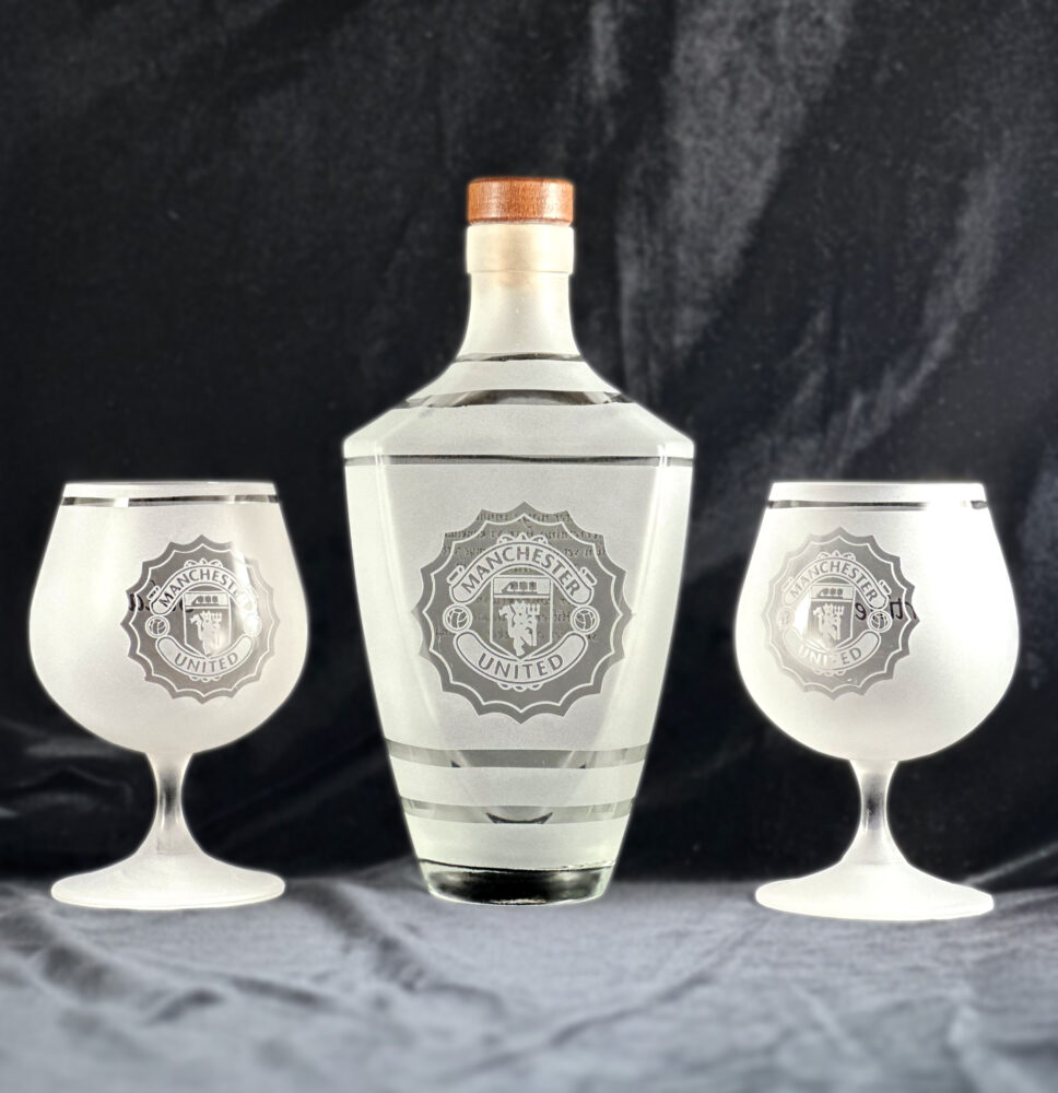 Graviruotas grafino ir taurių rinkinys, skirtas tvarkingai ir reprezentatyviai dovanai. Tinka tiek asmeninėms progoms, tiek išskirtiniams suvenyrams.