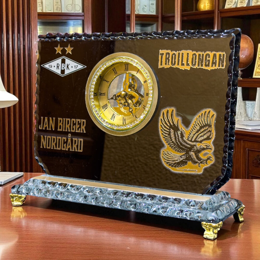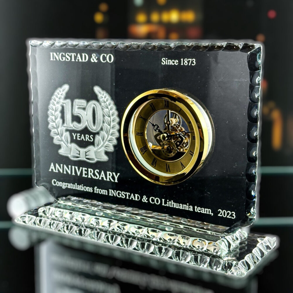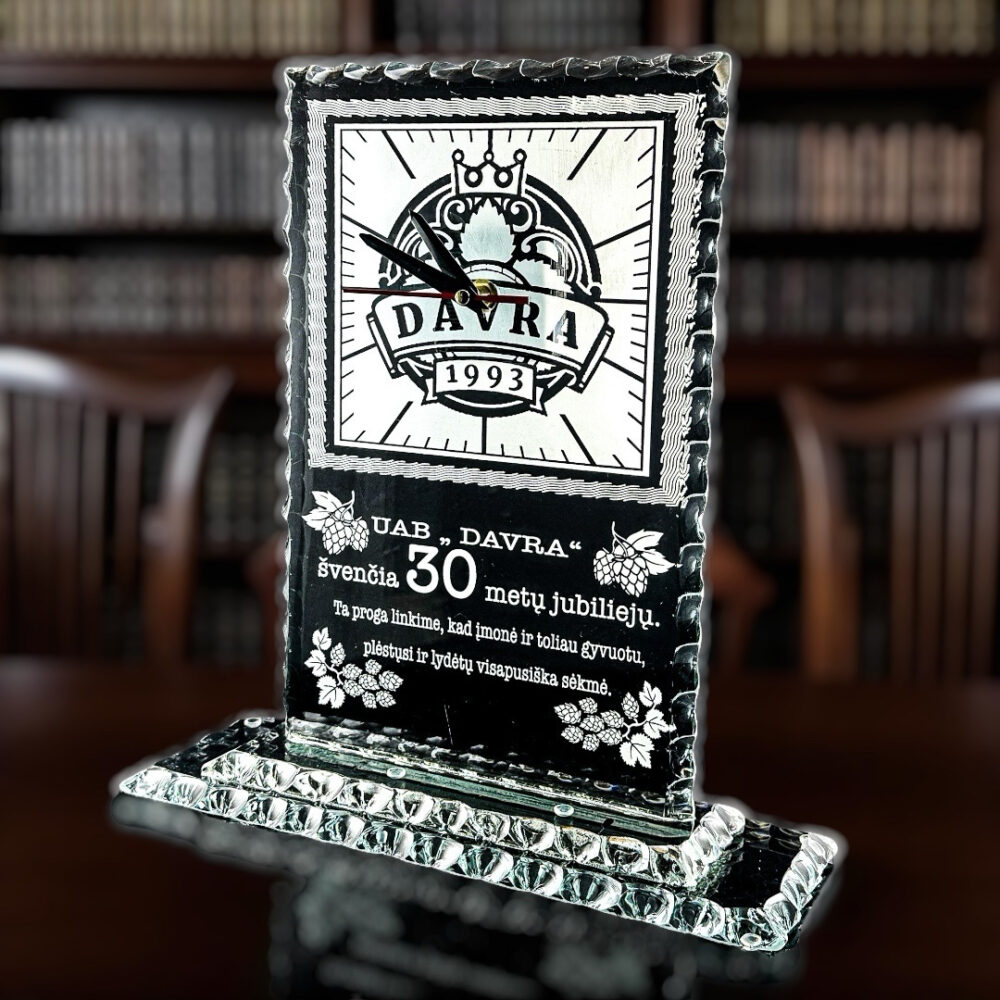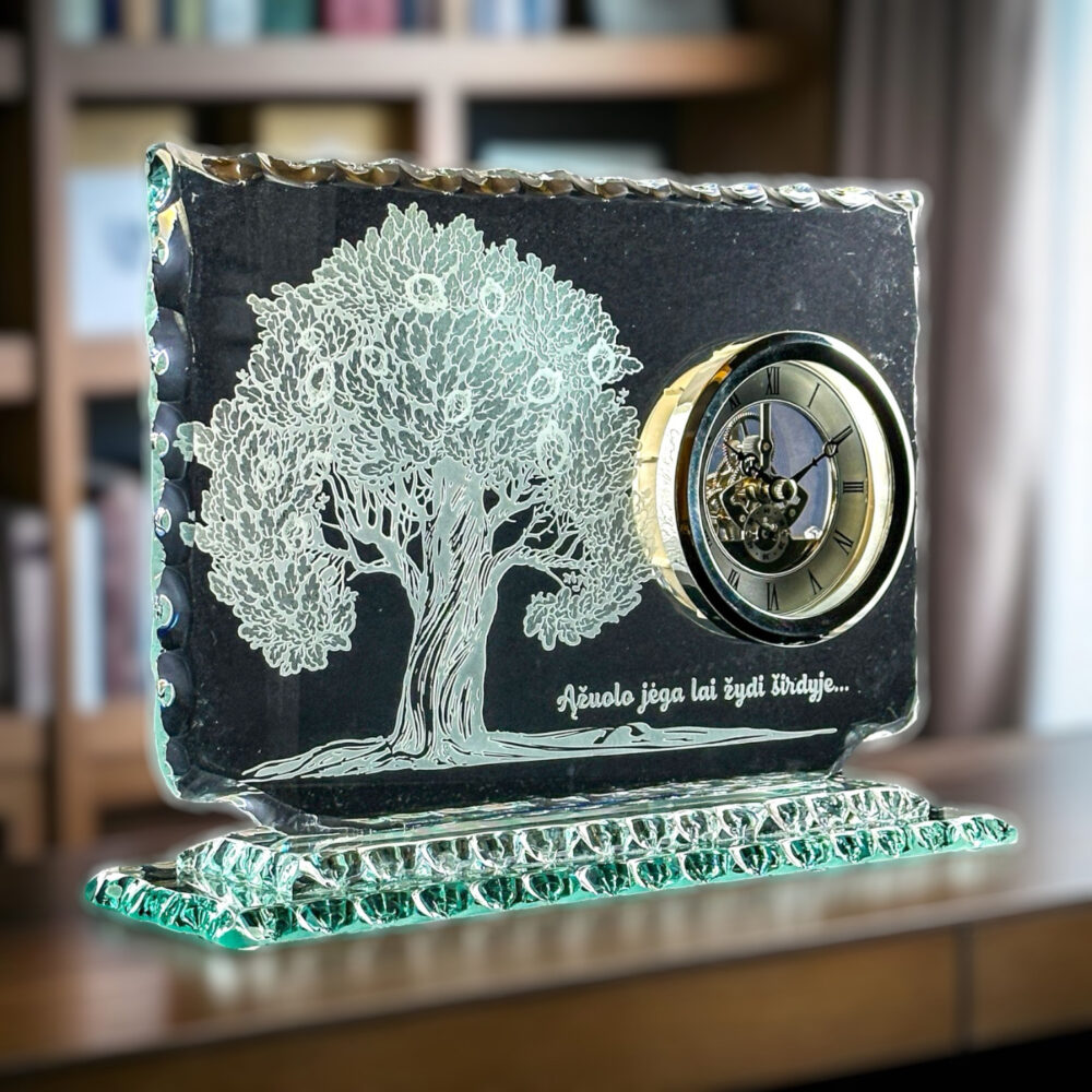 Peržiūrėti kategorijąAnt LAGUNA stiklinio stovo su laikrodžiu galima graviruoti asmeninį tekstą, vardą, padėkos žodžius ar logotipą – elegantiškas pasirinkimas dovanai ar verslo apdovanojimui.