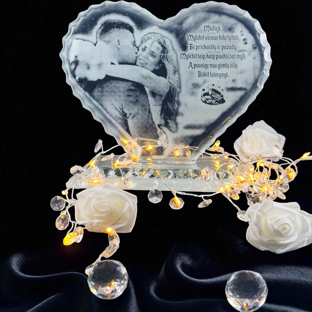 Asmeniniai tekstai, vardai, datos, nuotraukos ar simboliai – pasirinkite tai, kas Jums svarbiausia. Graviruojame pagal Jūsų idėjas: nuo gimimo ir krikštynų duomenų iki sveikinimų jubiliejų ar romantiškų meilės žinučių. Taip pat galima graviruoti įmonės logotipus ar specialias progines dedikacijas.